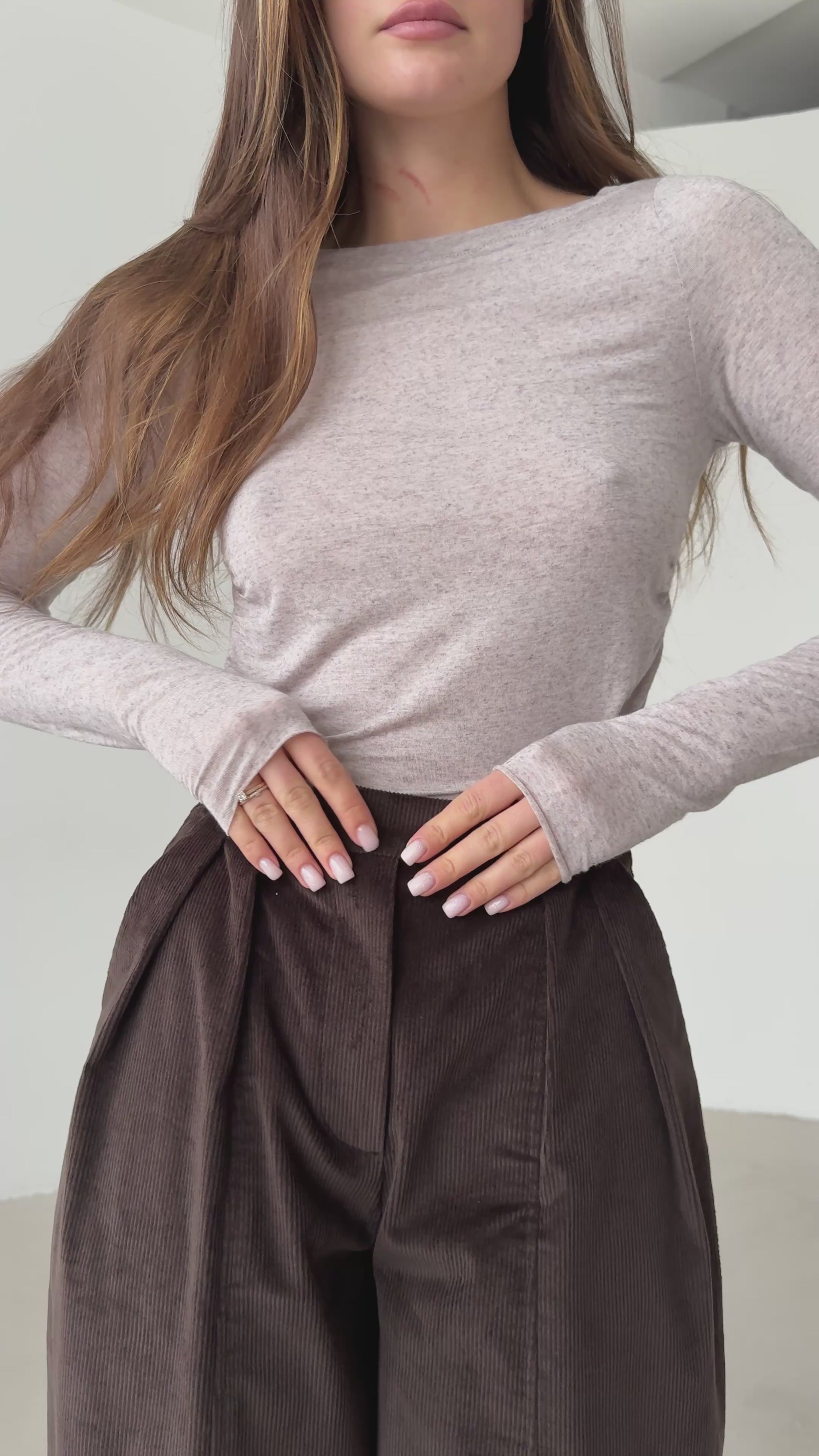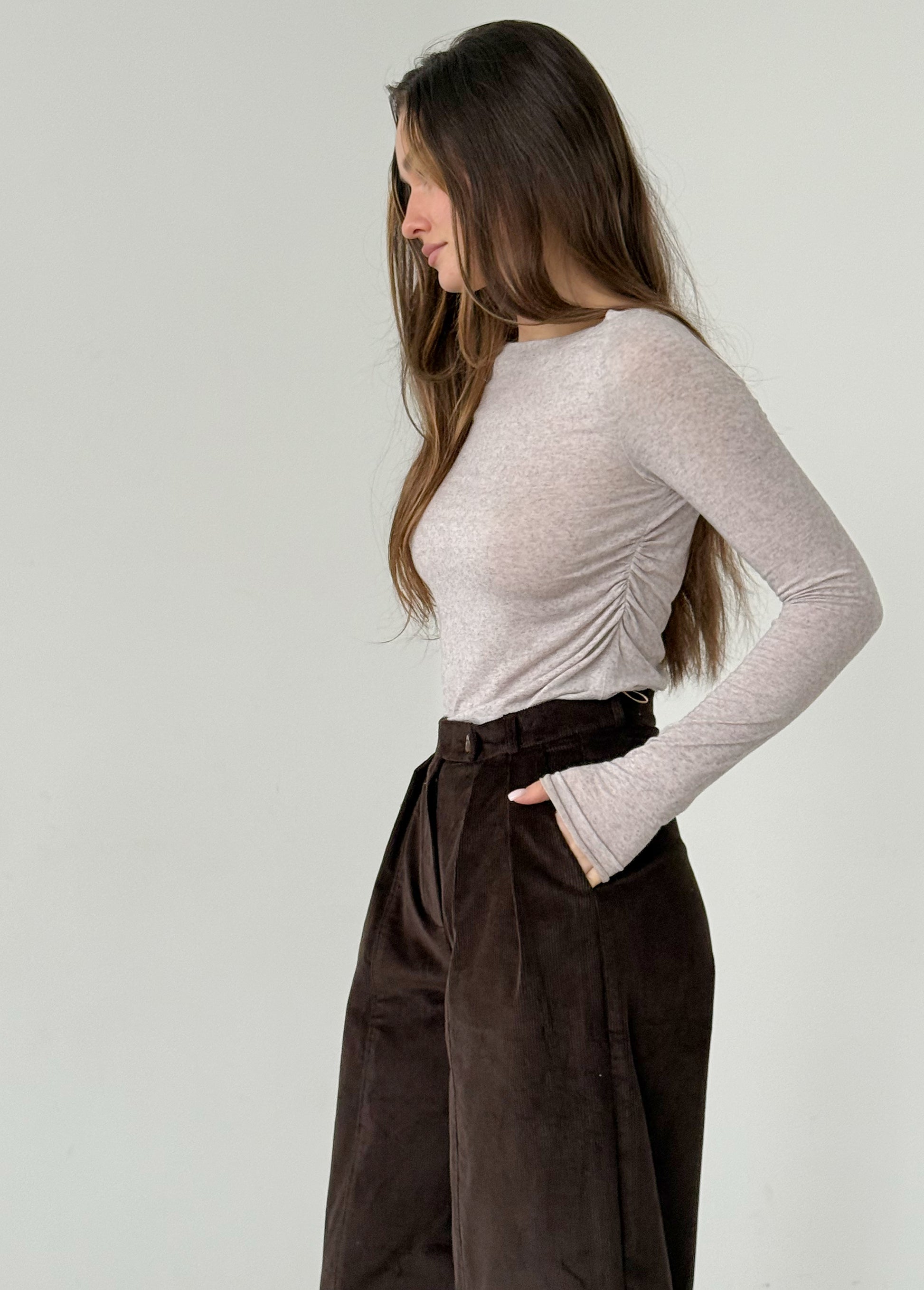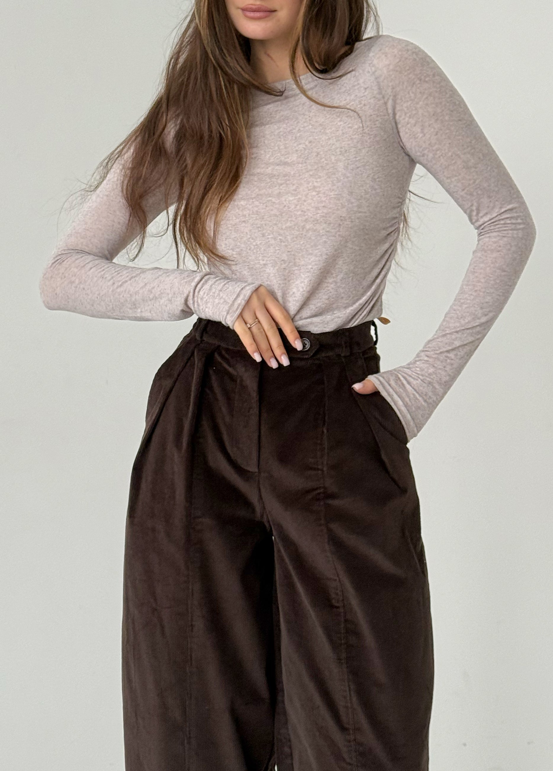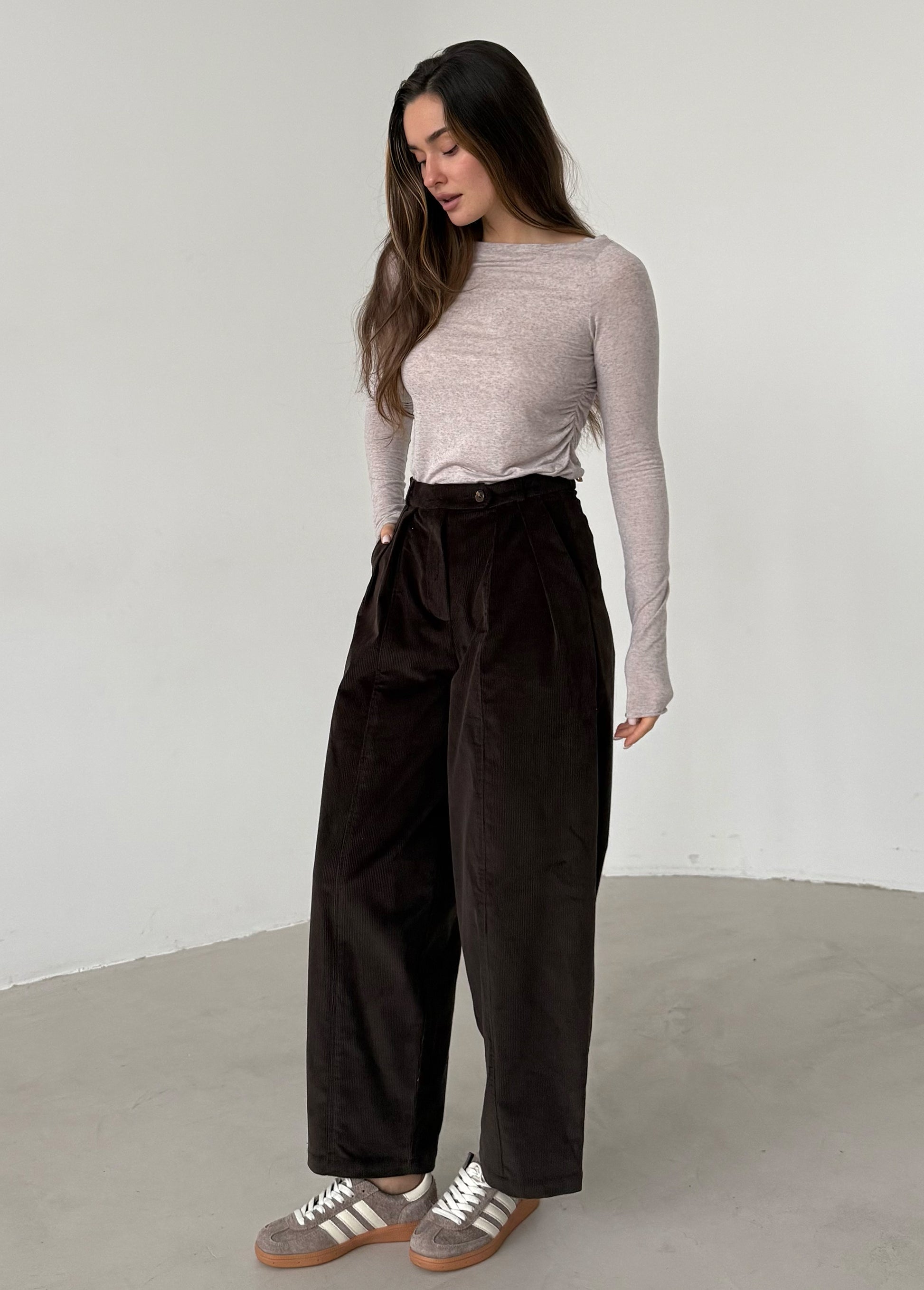 Chocolate corduroy baggy trousers with fly