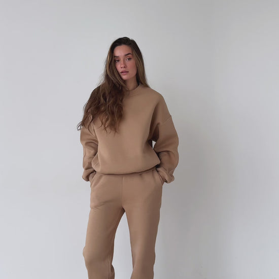 Comfortable сappuccino joggers made from soft fleece fabric with a warm brushed interior. Designed for everyday wear, they combine a relaxed silhouette with practical details, making them ideal for casual outfits, travel, or lounging.