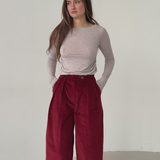 Raspberry corduroy baggy trousers with fly