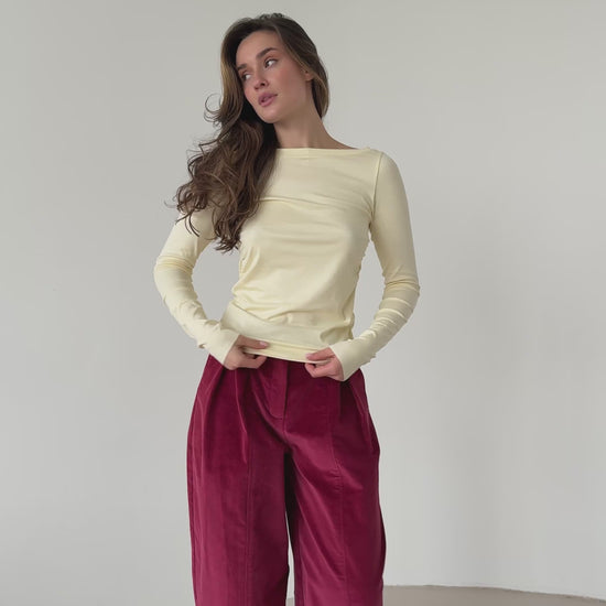 A lightweight longsleeve top made from soft viscose in a fresh lemon shade. The clean design and smooth texture make it a versatile wardrobe staple that pairs effortlessly with trousers, skirts, or denim. Comfortable, breathable, and ideal for everyday wear.